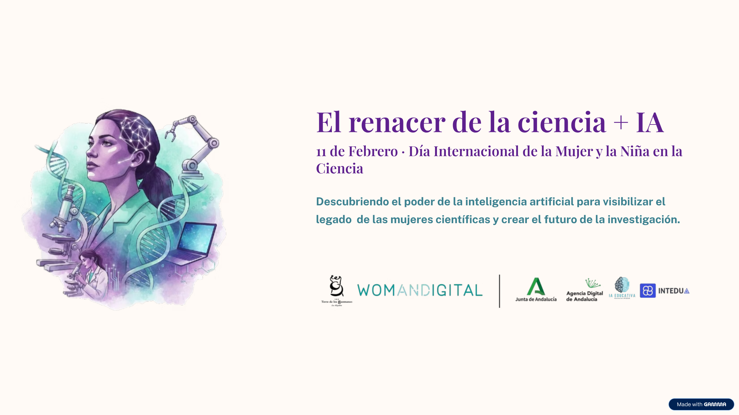 Para mí, en adelante, los 11 de Febrero serán días muy especiales y en gran parte se lo debo a la iniciativa WomANDigital de la Agencia Digital de Andalucía, y en especial a M. Luisa Ulgar, Victoria Cabrera, Gema Castejón y a todo el equipazo detrás de la bonita y necesaria iniciativa para fomentar el espiritu STEM en niñas desde muy temprana edad.