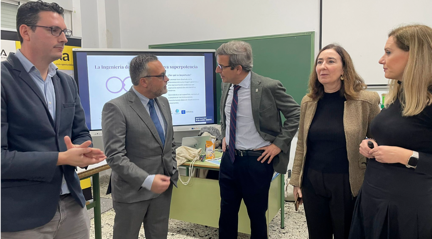 Ese día, contamos con la asistencia del Consejero de Industria, Energía y Minas, Jorge Paradela, acompañado del viceconsejero de Desarrollo Educativo y Formación Profesional, Pablo Quesada; el Director Gerente de la Agencia Digital de Andalucía, Raúl Jiménez; la Subdirectora de Sociedad Digital, Carmen León; así como responsables del centro educativo.