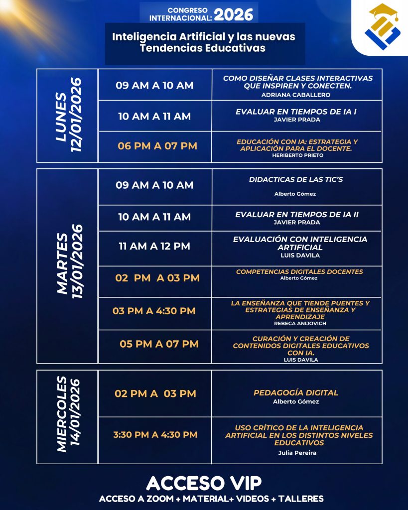 En esta ocasión, tendré la suerte de compartir una sesión titulada «Evaluar en tiempos de IA» dónde debatiremos sobre cómo esta nueva tecnología está impactando en los procesos evaluativos de nuestros sistemas educativos.