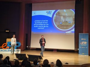 Se trata del Proyecto Edificios Inteligentes (Smart Building), desarrollado por los docentes Hugo Potau y Jose Ignacio Zaballos del I.E.S El Rincón (Las Palmas de Gran Canaria) dónde explicaron cómo ha sido su proceso de control sobre los recursos de su centro, empezando por controlar un aula (durante el curso 21/22) y qué están consiguiendo en la actualidad, participando en proyectos de internacionalización y sostenibilidad, generando una concienciación en su alumnado y en el del todo el centro increíble.