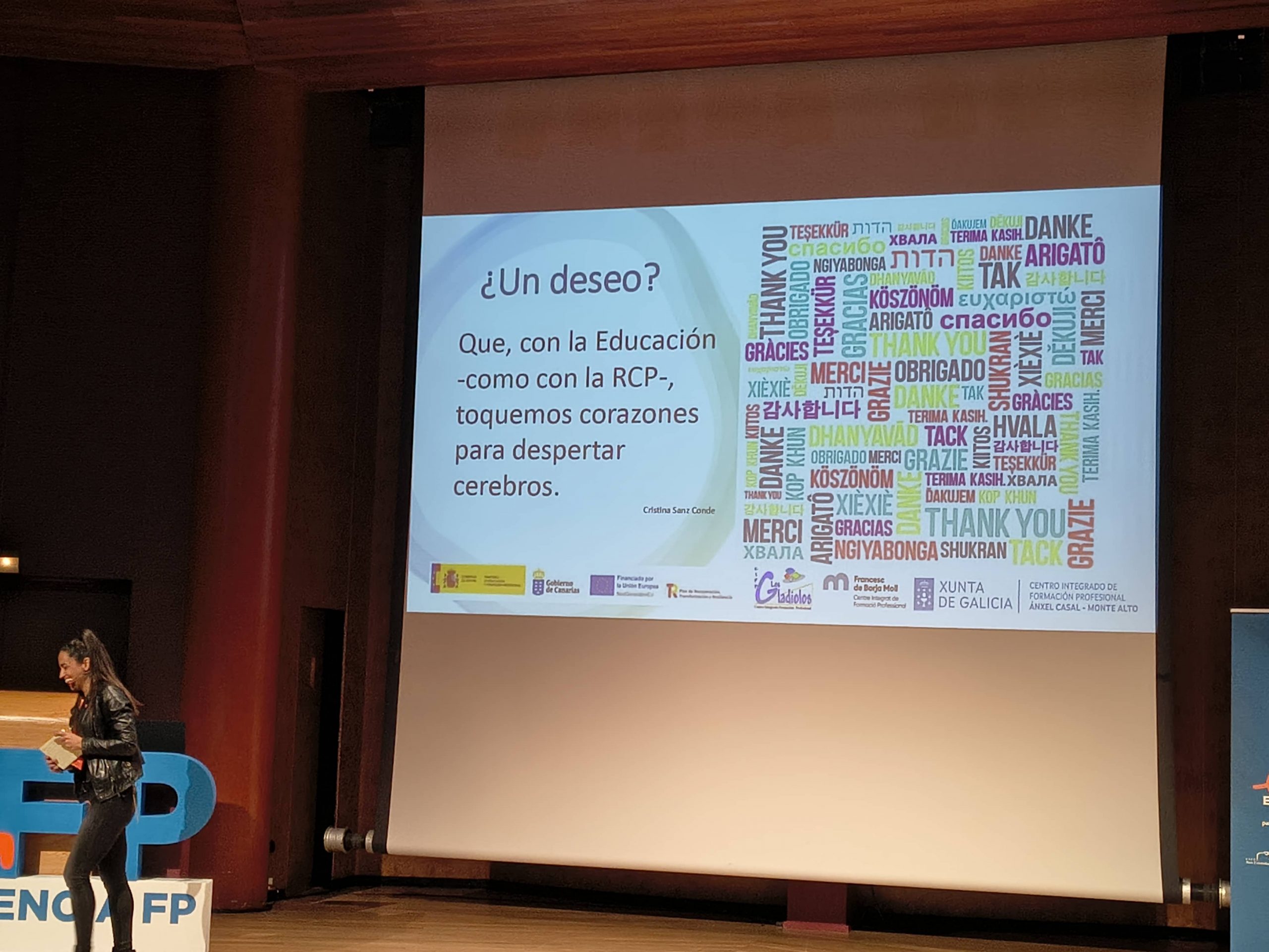 Se trató de la intervención de nuestra estimada compañera Cristina Sanz del CIFP los Gladiolos (Santa Cruz de Tenerife). No sólo por lo impactante de la propuesta sino por el trasfondo de la misma y las posibilidades que las simulaciones pueden aportar en una Educación post IA.