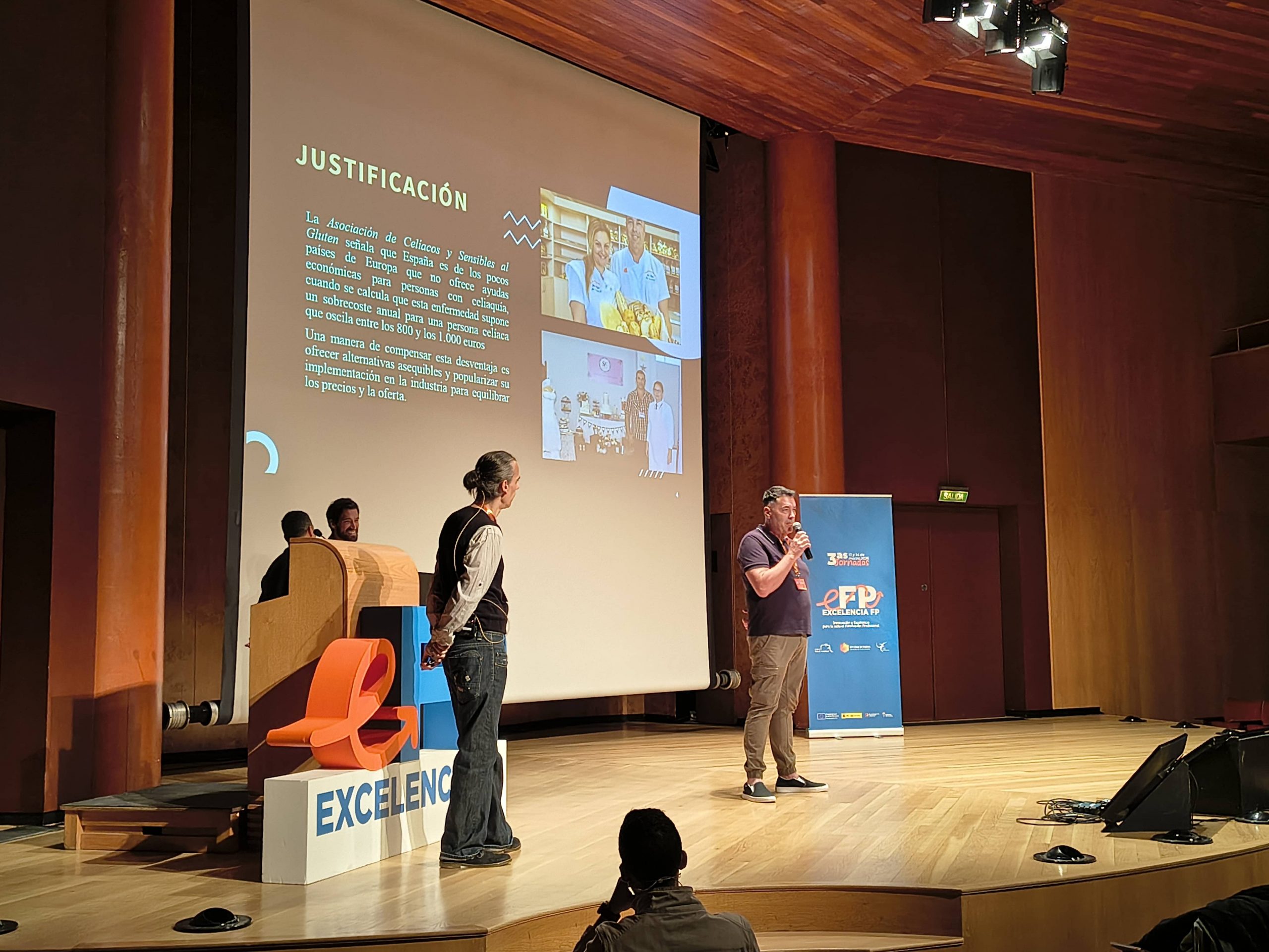 Continuando con la exposición de Nast Hernández, del CIFP San Cristobal, que presentó junto a su equipo y la empresa «Panadería Amaro» un proyecto muy bonito de repostería Sin Gluten.